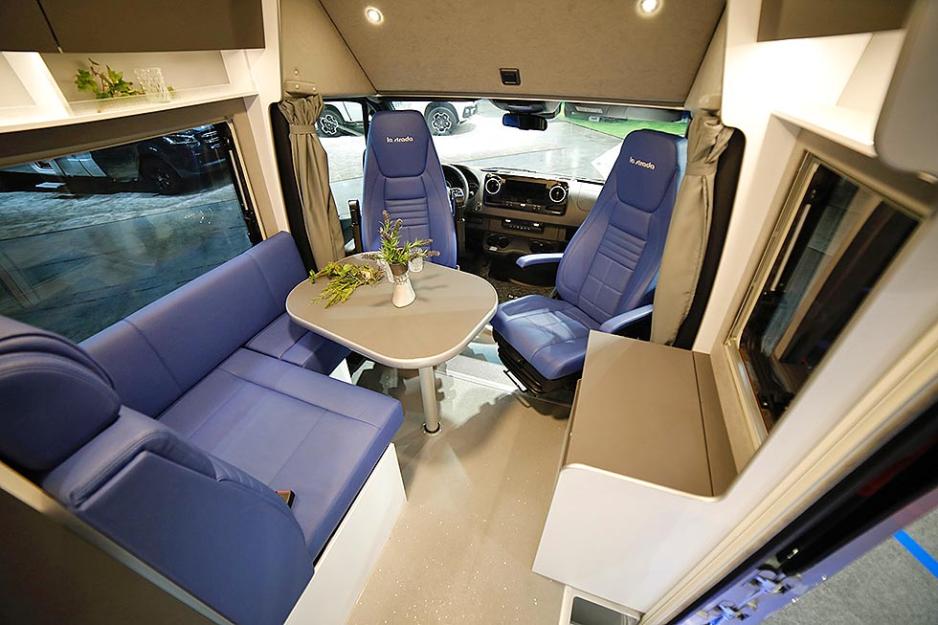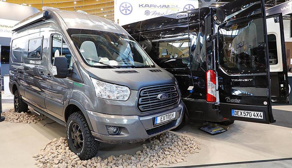 Det er fremkommelighet som står i sentrum hos den tyske bybobilspesialisten Karmann Mobil: På CMT hadde de fokus på modeller basert på Ford Transit med firehjulstrekk. Vi har tidligere skrevet om Dexter 560 4x4 med tverrstilt dobbeltseng. Nå kommer splitter nye Dexter 570 AW med langsgående senger og en lengde på kun 5,98 meter. Det klarer produsenten å oppnå ved å kutte ut baksetet. I stedet får man et bord og ganske god romfølelse når man har parkert og snur forsetene.
