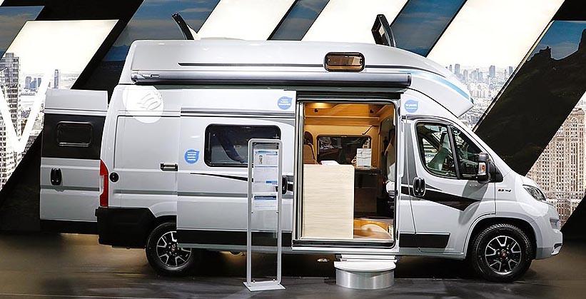 Med blå utvendig dekor og «bølger» på sofaputene ønsker Bürstner å gi maritime assosiasjoner med sin nye Delfin-bobilserie. Bürstner kaller det årets comeback, da Delfin-navnet ble brukt tidlig på 2000-tallet. Den gang ble Renault Master-chassis brukt, men på årets messe ble modellen vist frem på Citroën Jumper. Til Norge kommer serien på Fiat.
