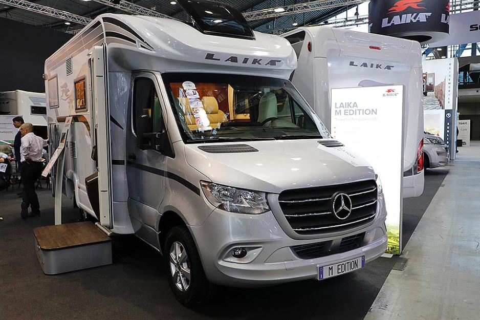 På messen ble halvintegrerte Laika M Edition på Mercedes Sprinter 311 CDI-chassis vist frem. Den 699 cm lange modellen kombinerer Mercedes´ kjøreopplevelse med Laikas bobilekspertise. Møblene og veggene er i imitert italiensk valnøtt-finish, i kontrast med hvite skapdører og detaljer. Vi liker interiøret i modellen godt, ikke minst fordi Laika har klart å balansere klassisk eleganse med et moderne uttrykk, samtidig som bilen signaliserer kvalitet.