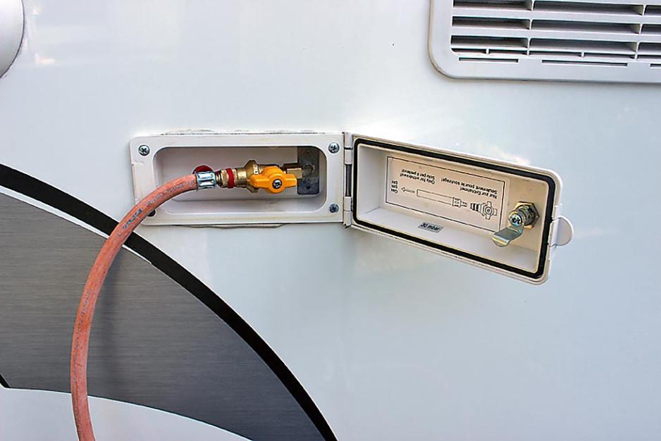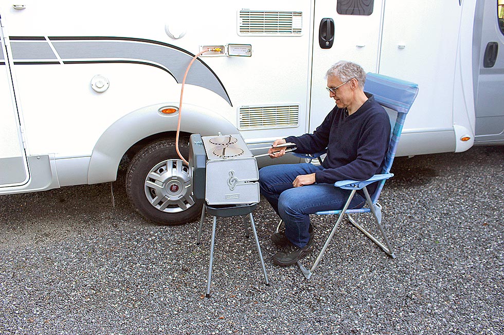 Undertegnede har montert flere slike gasskontakter gjennom årene og har som campingbilprodusent flere hundre gassanlegg på samvittigheten. I dette eksemplet var vi ekstra heldig. Du vil jo helst grille på bilens høyre side ved inngangsdøren og markise, og på denne bobilen var kjøkkenbenken rett innenfor. Bilen kunne leveres med stekeovn som ekstrautstyr, dette hadde den imidlertid ikke. Dermed var hurtigkranen for stekeovn inne i bilen plugget igjen. Boksen med kontakten ble da montert lett tilgjengelig på innsiden av benken. Det ble videre ført et rør fra boksens bakside og rett inn på hurtigkranen.