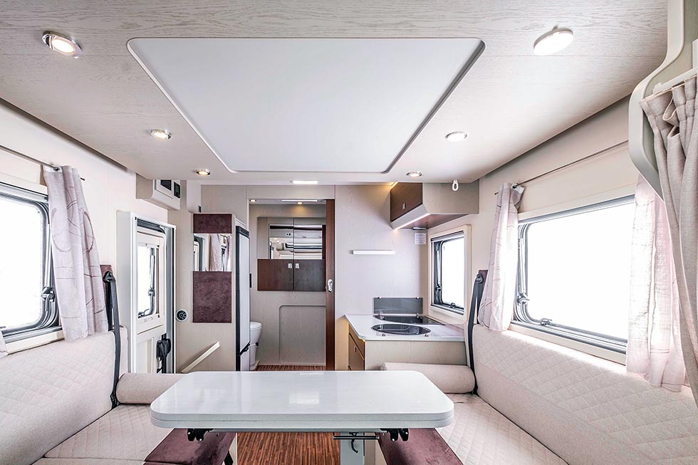 De to nyhetene er Seal 67 Plus, som er en annerledes halvintegrert bobil. Selv om modellen kun er 6,45 meter lang, har den en svært åpen romfølelse takket være fraværet av fast seng. Bak er det mye skapplass og tverrstilt bad. Det er ingen L-løsning på verken kjøkken eller sittegruppen (som har sidesittere), og resultatet er at du får et stort «dansegulv» å boltre deg på. Den andre nyheten heter Seal 99 Plus, og er en 7,43 m lang halvintegrert bobil med enkeltsenger.