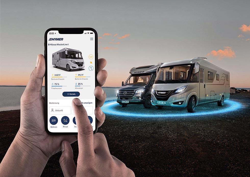 Løsningen kommuniserer med Bluetooth når man er i eller ved kjøretøyet og med mobiltelefonens dataløsning når avstanden er større. Hymer oppgir at appen vil fungere sømløst i 30 europeiske land fra lansering av. Hymer Connect App kan sende varsler til brukeren. Om for eksempel kjøleskapdøren ikke er skikkelig lukket, eller om du har lite ferskvann igjen.