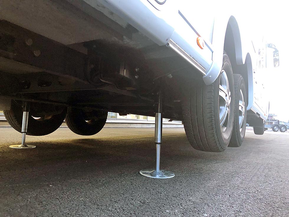 – Vi kjørte 450 mil i sommer og brukte løsningen daglig. Vi har ikke hatt noen funksjonsmessige problemer, alt har fungert perfekt. Men vi har hatt en viss læringskurve. Det er for eksempel viktig å senke bobilens bakre luftfjæring så mye som mulig før vi bruker støttebeina. Målet er at bobilen skal bli så lav som mulig når den er i vater. Hjulene skal helst nesten berøre bakken. Det gjør at vi gjerne finner en plass som ikke er for ulendt. Vi bruker kun den innebygde tallerkenen, og selv om vi snakker om over ett tonn per bein er den innebygde skålen stor nok for de fleste underlag.