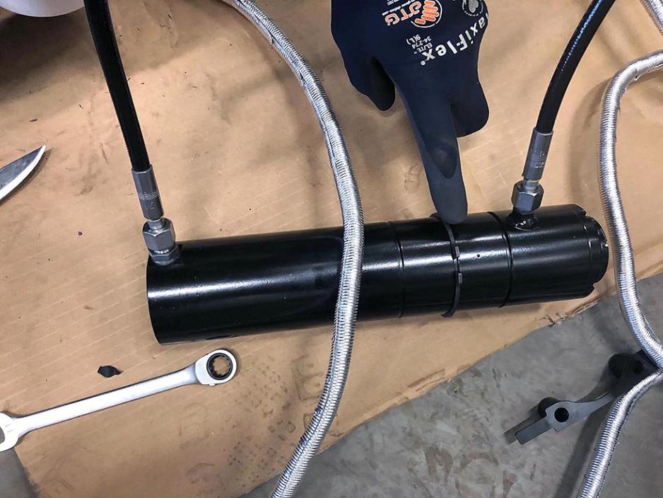 Systemet er unikt i den forstand at det består av fire støttebein med hver sin hydrauliske enhet. Før montering ble disse klargjort. Alle innfestingsenheter ble kontrollert og tilpasset til min spesifikke ramme. Alle sylindre har tre spor for låseringer, som kan regulere løftehøyde ved montering. Disse ble montert i midterste posisjon for å kunne tilpasse høyde mot kjøretøyets gulv samt å ha kontroll på høyde fra veibanen.