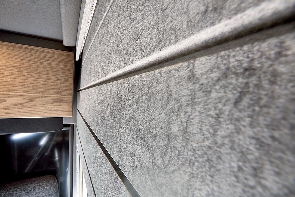 Interiøret er et kapittel for seg selv: Innervegger kledd i et materiale som ligner på filt, og utstrakt bruk av indirekte lys.