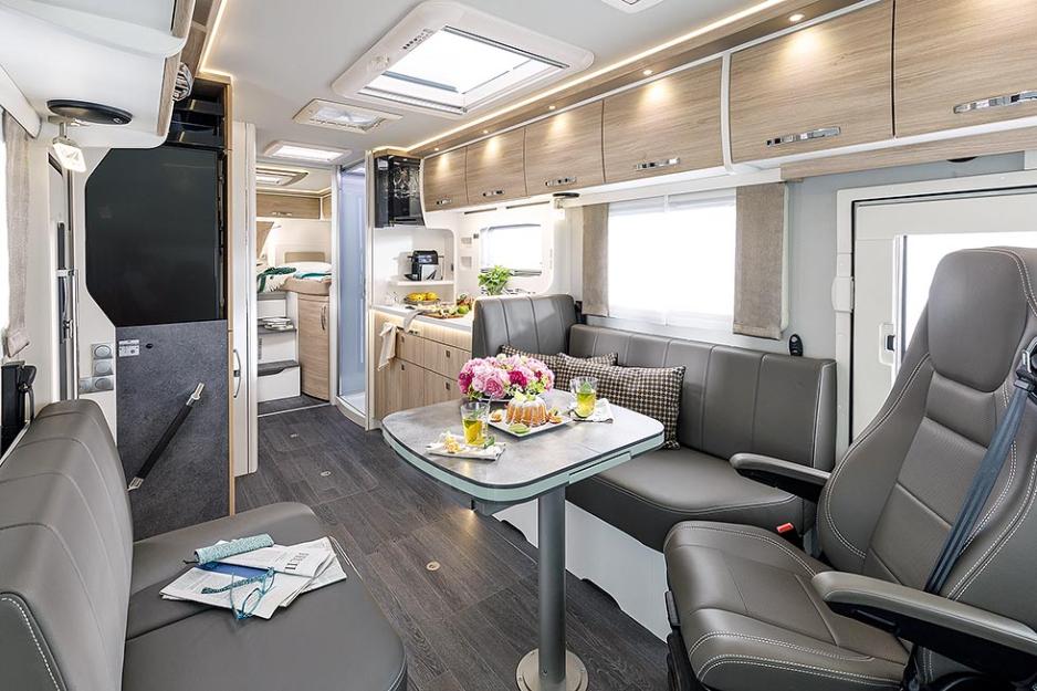 Det å være selvforsynt er også en viktig forutsetning for nye Frankia Titan Next. Den er utstyrt med Thetfords nye Indus toalettsystem, og bidrar til at Titan Next kan klare seg uten strøm, vann eller tømming i opptil syv dager. På taket er det som standard solcellepanel på 330 watt, og to litiumbatterier gir til sammen 240 Ah. Det er også montert en inverter, slik at du kan få 230 volt i stikkontaktene - uavhengig om du er tilkoblet strøm.