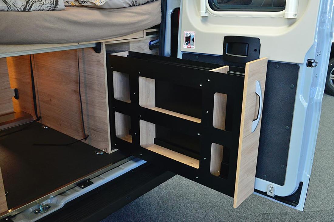Dethleffs Globetrail 600 har en fleksibel garasje med masse lagringsplass.