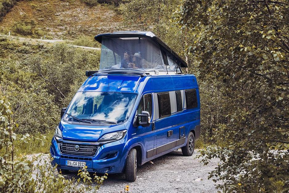 Carados bybobiler på Fiat Ducato kan som tilleggsutstyr leveres med pop-up-tak og to ekstra soveplasser.