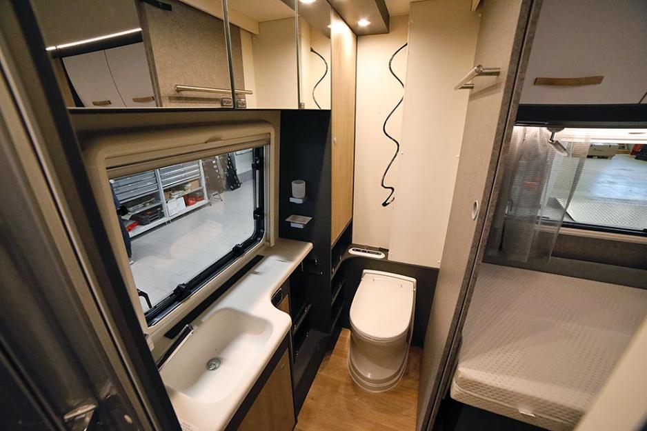 Både soverom og bad er som forventet på denne typen vogn: Trivelige og praktiske. Spesielt det tverrstilte badet er romslig. Den gode plassen kommer godt med, når vi nå kommer til første oppgradering: