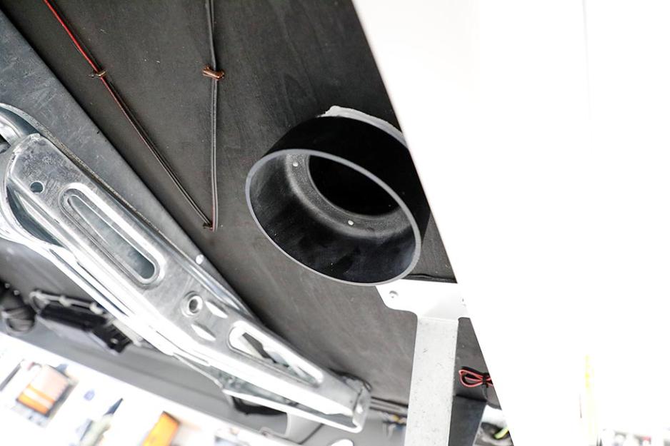 Selv om toalettet har de samme fysiske målene, er installasjonen en del jobb. Forbrenningen er gassdrevet, og ny gasstilførsel må lages. I tillegg skal det på plass et nytt luftinnsug og en «pipe» som må gå over taket. For å få til dette har mekanikerne hos Ferda Mysen fjernet et speil på bakre sidevegg. I tillegg er det bygget en ny kasse til pipa i baderomshjørnet. Et nytt smalere speil vil komme på plass før vogna leveres kunden.
