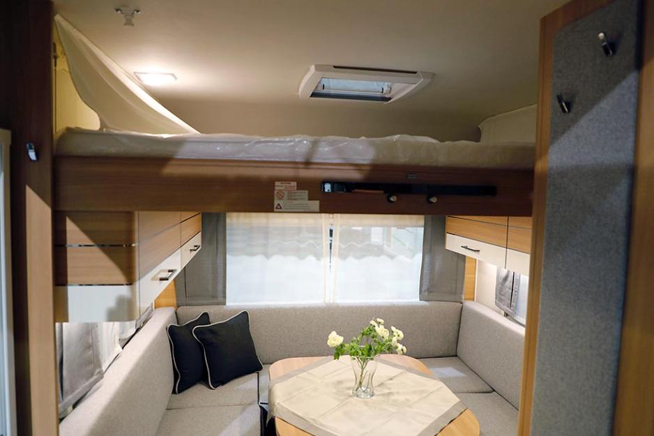 Senkesenga er god og romslig til to. Sittegruppen under kan res opp til to personer til. Den doble køyesengen har selvsagt også plass til to. I tillegg kan et barn sove i barnesittegruppen. Det gir hele sju soveplasser i denne relativt lette og kompakte reisevogna.