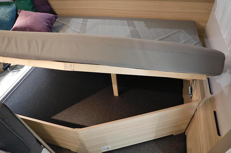 Også over sittegruppen er det skapplass. I den ene sofaen er vanntanken plassert. I tillegg er det plass til en meget praktisk skuff.