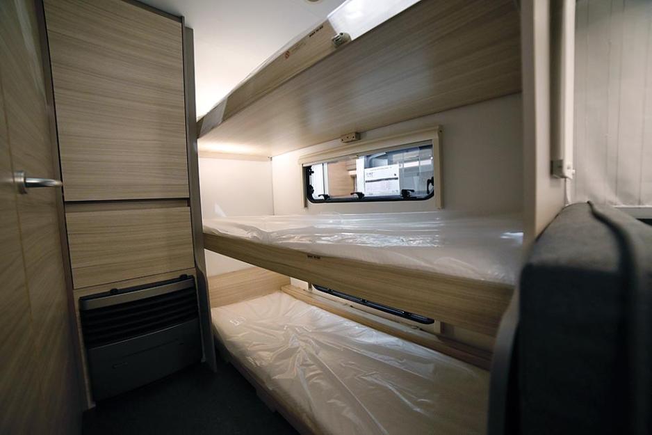 Som nevnt er det plass til tre barn i høyden i den bakre soveavdelingen. Alle de tre sengene er fastmontert. Her kunne vi ønsket oss en form for hengsling, og kanskje til og med muligheten til å ta ut en seng. Det vil føles mer luftig og gi bedre komfort om ikke alle sengene brukes. De to øverste køyene er merket med en vektbegrensning på 70 kg. Den nederste er solid festet til gulvet, men er ikke i full lengde. Det er derfor greit å være klar over at de tre køyene i praksis kun er egnet for barn.