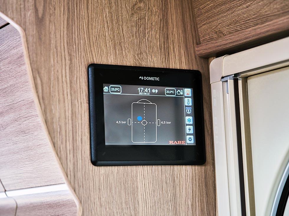 Kabe kaller sitt styringspanel for Smart D. Dette utvides nå med tre nye funksjoner: Gassnivå, dekktrykk og nivellering. Kabe Smart Level blir standard i Imperial-serien (både bobiler og campingvogner) og kan fås som ekstrautstyr i Crown og Royal bobiler, og i Royal-serien av campingvogner.