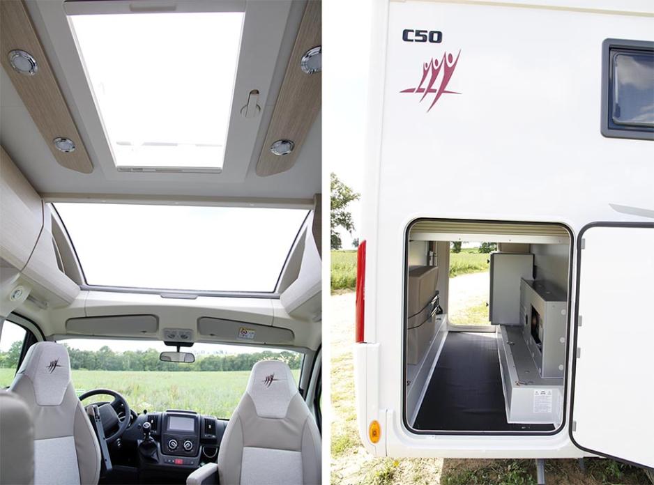 Fjorårets to store nyheter, C50 og 854F, har fått oppgraderinger for 2023: Kompakte C50 med sine kompakte mål på 6,59 m lengde og 2,17 m bredde, kan du nå skyve dobbeltsengen bakover for å frigjøre plass rundt sengen på dagtid. Denne modellen leveres nå på Peugeot Boxer. Det er store utfordringer med å få tak i Fiat Ducato for tiden. Når det gjelder 854F som har en stor U-formet sittegruppe bak i bobilen (med plass til sju personer) så har den fått elektrisk senkeseng og bak passasjersetet er det nå en ekstra hylle.