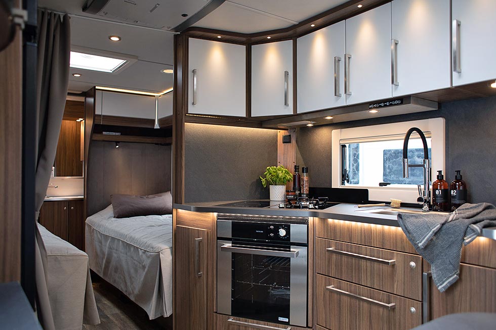 – En av forbedringene i 2023-modellene er at vi har gått gjennom hele ergonomien inne i vognene. Alt fra nye overskapsdører til plassering av mikrobølgeovnen, er justert. Vognen må kunne brukes i alle årstider, noe som stiller høye krav til kvaliteten, sier Tony Ekström, administrerende direktør i Solifer Polar AB.