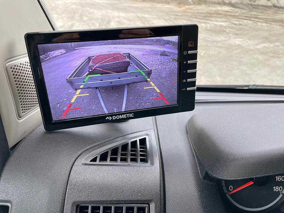 Mange bobiler har en eksisterende 2-DIN bilstereo med ekstern skjermtilkoblingsmulighet. Da er det naturlig å koble ryggekameraet til denne eksisterende skjermen. Det var ikke tilfelle i vår testbil, derfor ble det i stedet montert Dometics egen skjerm. Plasseringen på venstre side av fører gjør det lett å veksle blikket mellom bakspeilet og skjermen. Dometic påstår også at koblingen gjør at bildet man ser har høyere oppløsning og er skarpere.