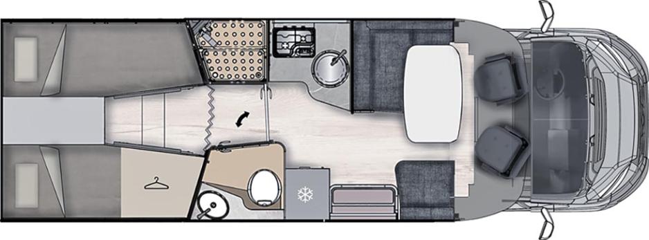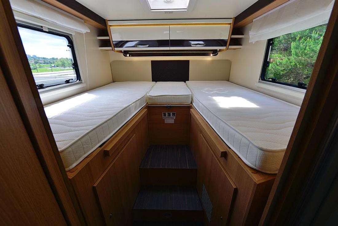 Det er fire faste sengeplasser og mulighet for inntil fem passasjerer under kjøring. Men det er bare så vidt plass til fem rundt bordet, og lastevekten på 400 kg er i minste laget for fire (eller fem) personer. Men nå er det ikke så ille som man skulle tro med lastevekten, da bilen er meget velutstyrt fra start. Den selges som «All Inclusive», og det betyr at utstyret er inkludert i bilens vekt, ikke som i mange andre tilfeller der lastevekten oppgis til 500-550 kg, men refererer til en bil uten utstyr. Her snakker vi altså om 400 reelle kilo i lastevekt.