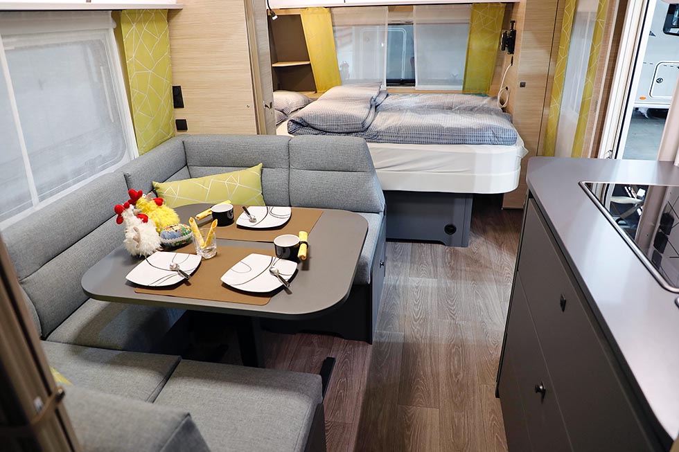 I denne modellen fra Fendt merker du best premiumfølelsen på det separate dusjkabinettet, og den ekstremt tykke og komfortable madrassen i hovedsengen. I tillegg får du elegant design og imponerende tekstiler.