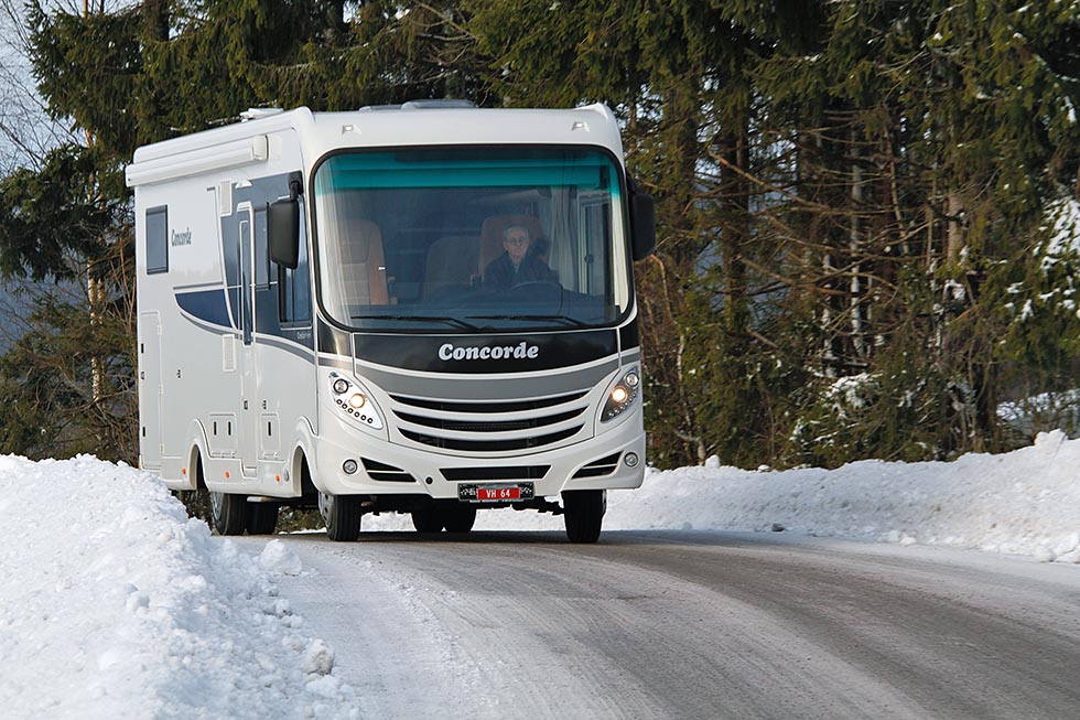 Et høyt chassis med dobbelt gulv fordrer noen trinn for innstigning. Trinnhøyden inn som begynner med et elektrisk stigtrinn, er 21/ 31/ 24 og 22 cm, som er bra for en så høy bil. I førerhuset har sidevinduene dobbelt glass og den elektriske gardinen for frontvinduet tetter helt i nederste posisjon. Sammen med plissegardinene på sidevinduene hjelper dette bra i sterk kulde.