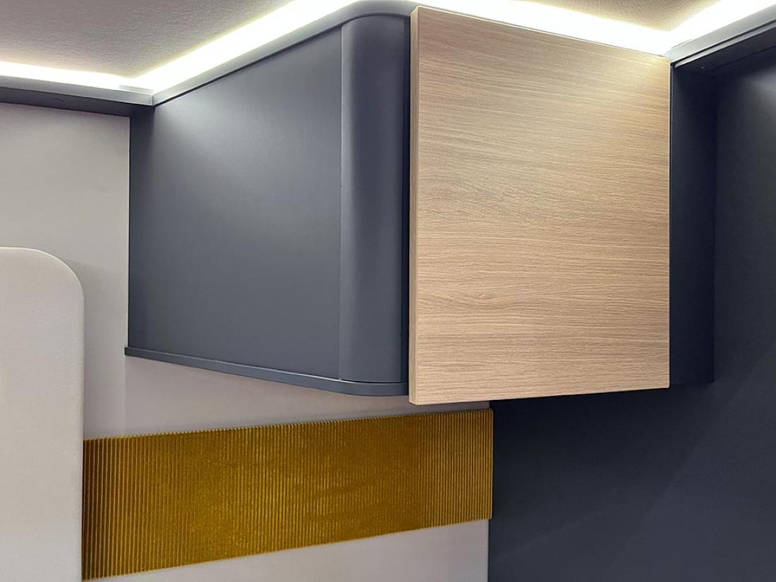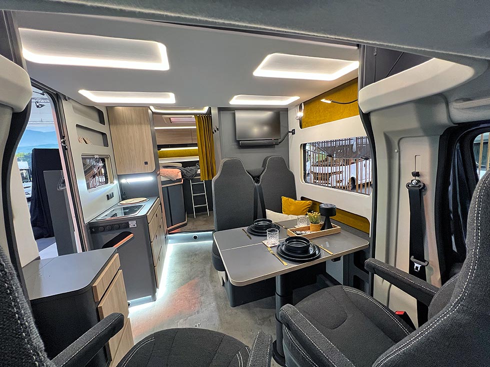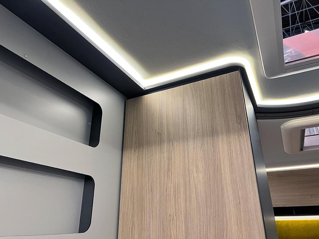 At Frankia har jobbet med lyssettingen, og tatt moderne indirekte LED-lys til nye høyder, stemmer virkelig. Det er et skikkelig trivelig lys i denne bobilen.