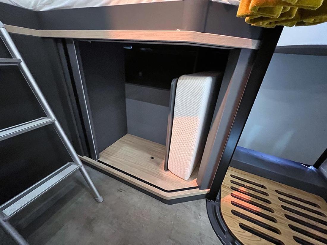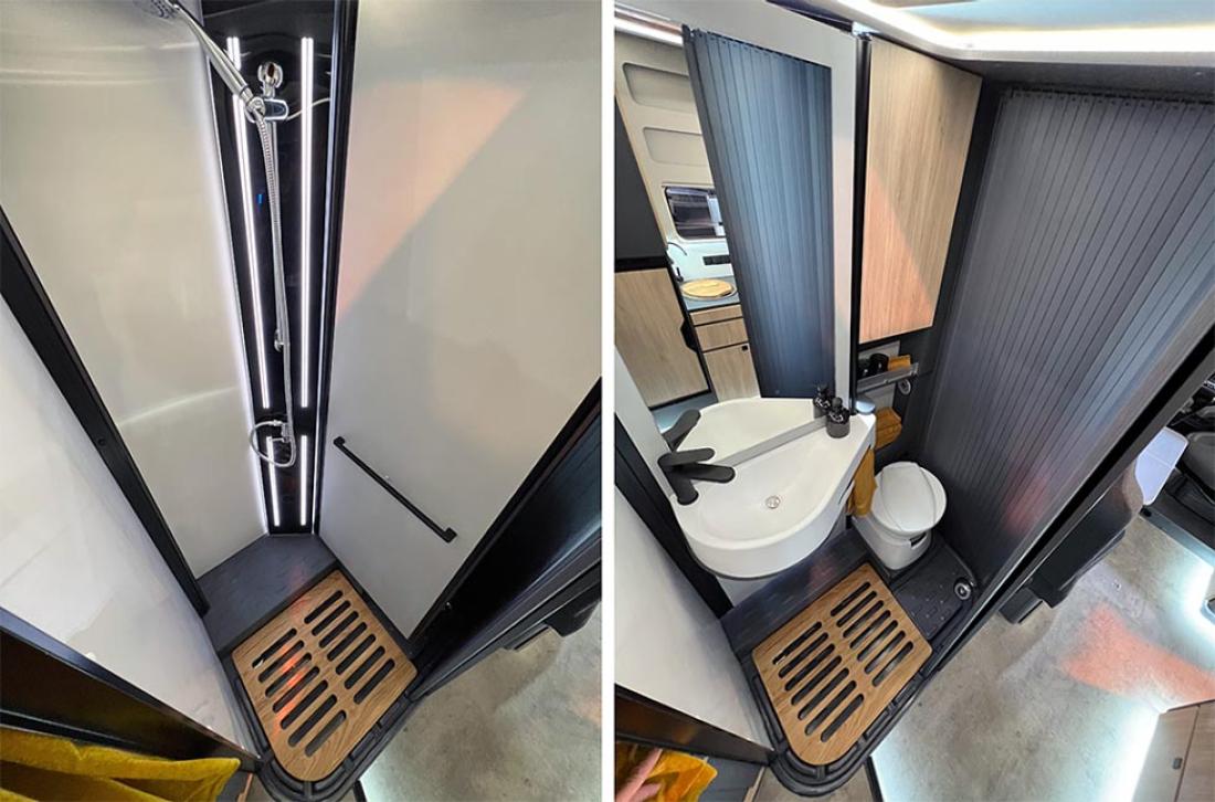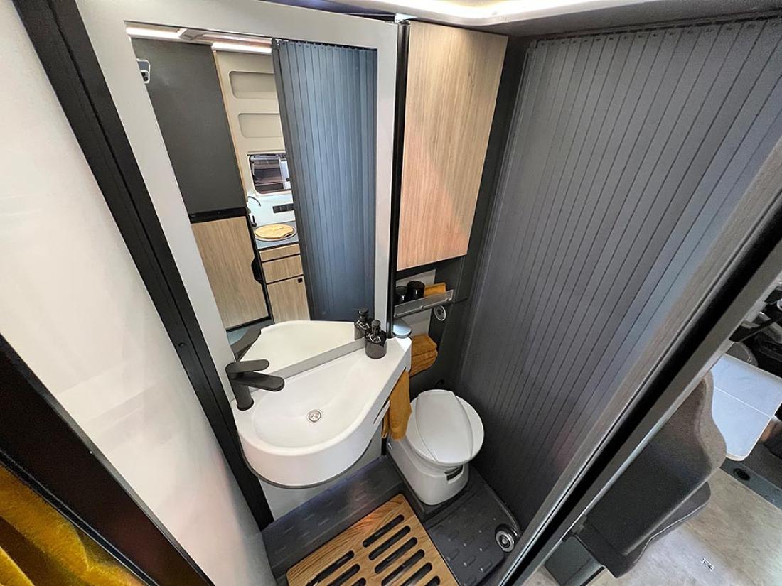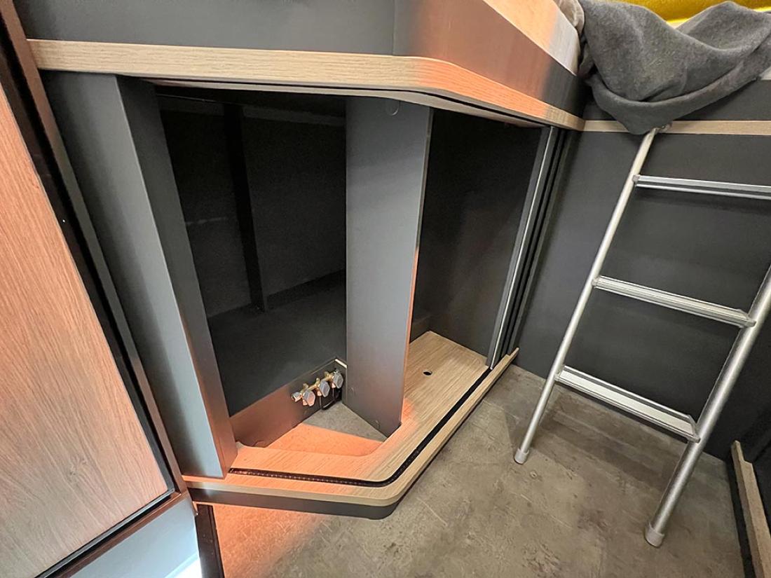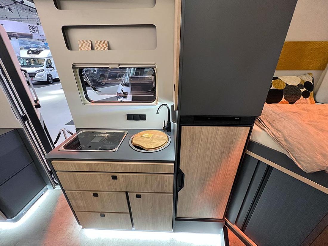 Selv oppgir Frankia tre punkter som gjør modellen unik: plass, design og lys. Her er ingen gardiner eller trappetrinn. Og det er kun overskap på soverommet. Jeg kjenner igjen mye av tankegangen fra Neo. Frankia puttet inn mye energi og utviklingsressurser i den halvintegrerte modellen da den ble lansert i 2019. Blant annet var det gjort mye for å gjøre modellen lettere, og det kjenner man igjen på Now. I stedet for overskap er det hyller og strikker. Det sparer vekt og gir en luftig følelse.