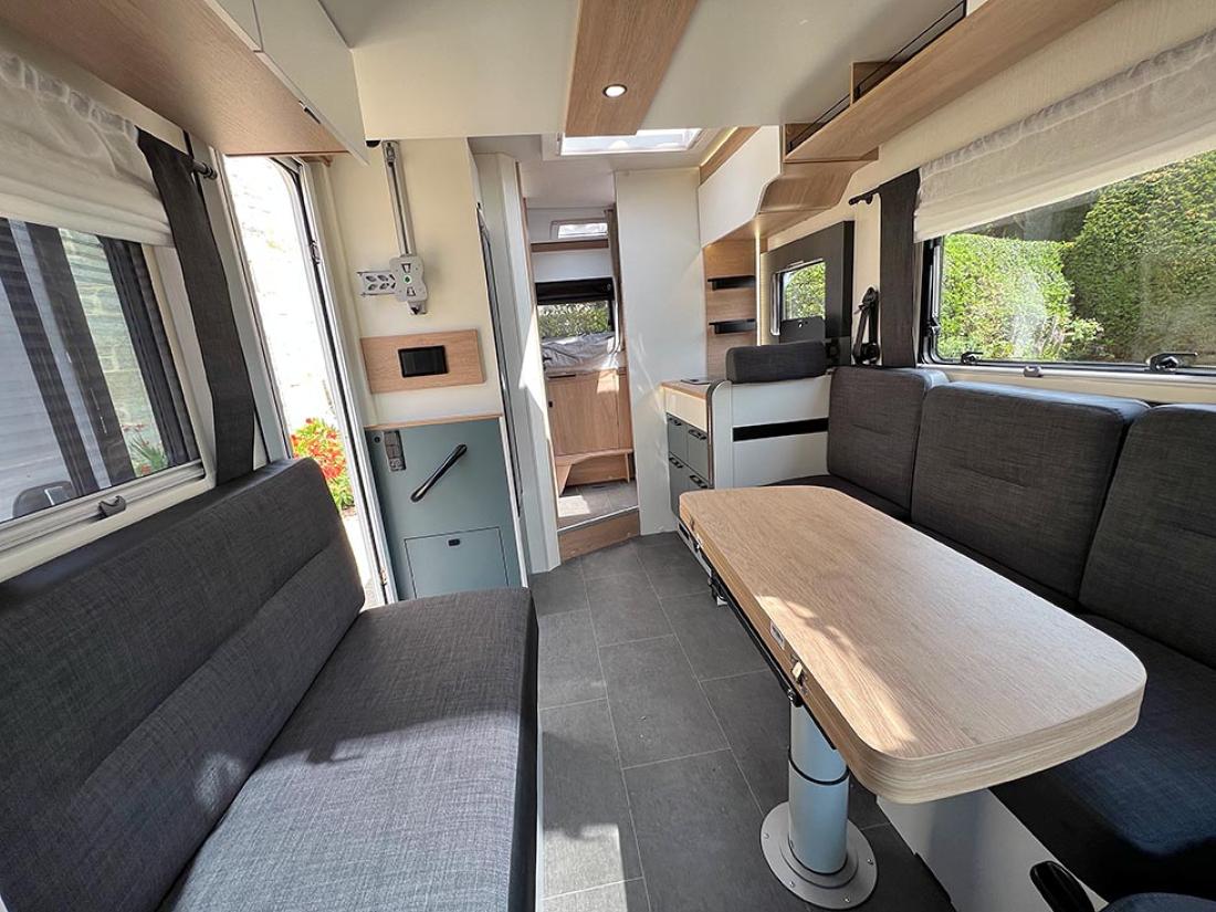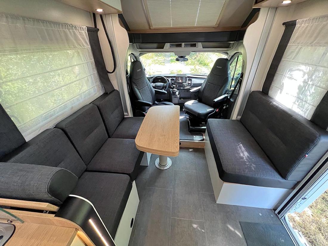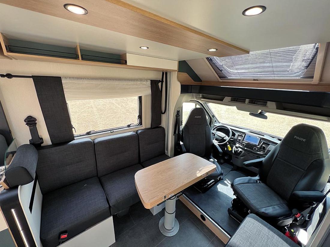 Vurderer du denne bobilen kan du slutte å vurdere hvor mye klær du skal ha med deg på tur. Du tar bare med alt du har! For 656G har en smart garderobeløsning og mye lagringsplass bak i bilen. Og det på bekostning av den tradisjonelle sengen. I stedet er hovedsengen i denne bilen en senkeseng i front. Det er plass til sju personer rundt det romslige bordet som kan foldes til halv bredde. Prisen vil starte på drøye 1,2 millioner, antyder Pilote.