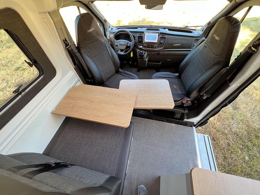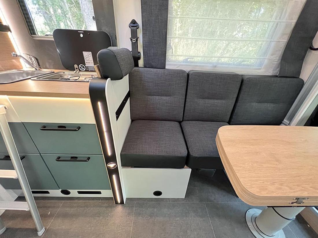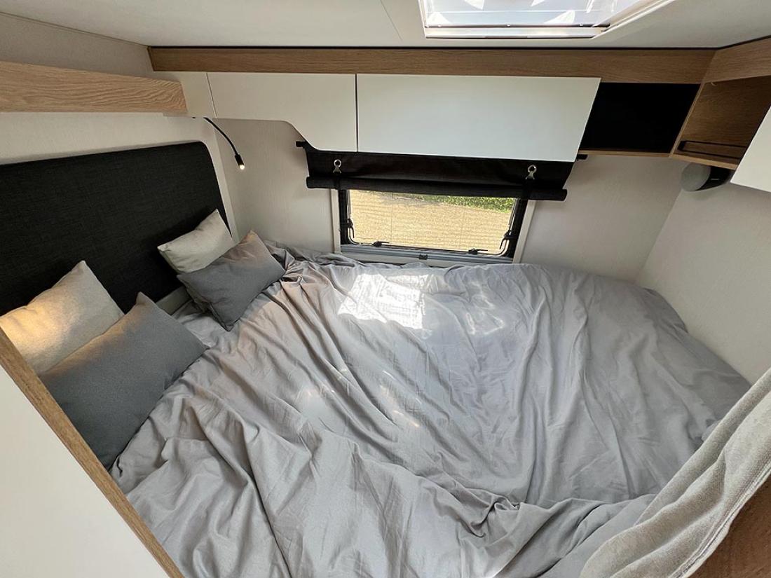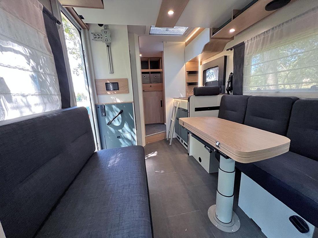 Vurderer du denne bobilen kan du slutte å vurdere hvor mye klær du skal ha med deg på tur. Du tar bare med alt du har! For 656G har en smart garderobeløsning og mye lagringsplass bak i bilen. Og det på bekostning av den tradisjonelle sengen. I stedet er hovedsengen i denne bilen en senkeseng i front. Det er plass til sju personer rundt det romslige bordet som kan foldes til halv bredde. Prisen vil starte på drøye 1,2 millioner, antyder Pilote.
