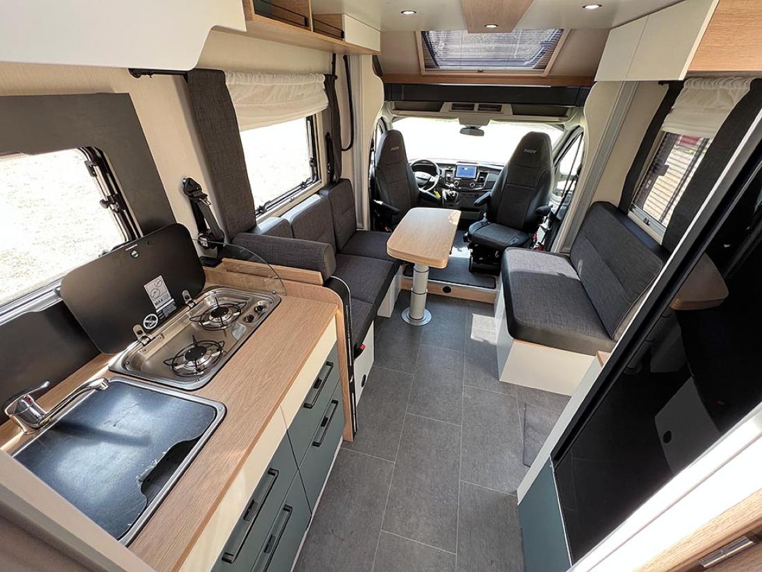 Sidesittere er standard, og gjør at sittegruppen virker luftig. Første halvintegrerte modell (696G) var utstyrt med en tverrstilt seng helt bakerst. Det blir neppe en salgssuksess i Norge. Langt mer spennende er nyheten 656G.