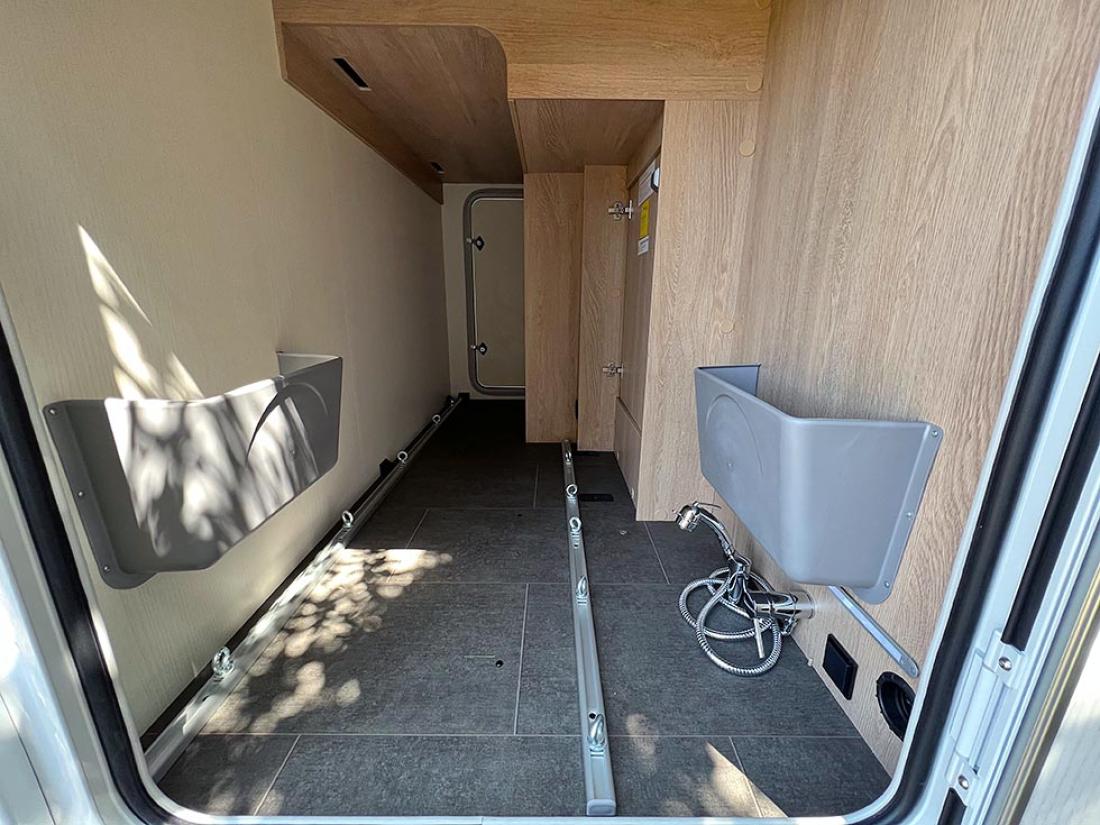 Atlas-serien har også bybobiler. Her er garasjen hele 105 cm høy. Du får derfor inn to sykler her, om du demonterer forhjulet på den ene. Din Fritid har prøvekjørt både bybobilen og den halvintegrerte versjonen av Atlas, og kommer tilbake med våre erfaringer.