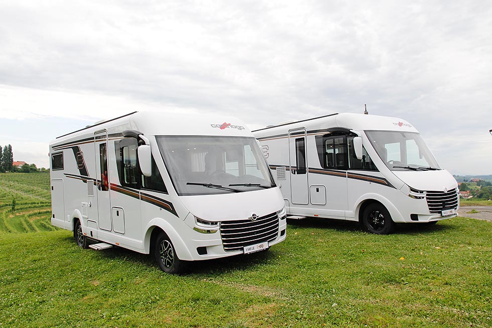 Denne nye interiørløsningen blir faktisk hele fire modeller. Den er nemlig bygget på enten Fiat eller Mercedes med AL-KO-chassis, og i hel- eller halvintegrert utgave. På pressevisningen var det kun de helintegrerte versjonene som ble vist fram.