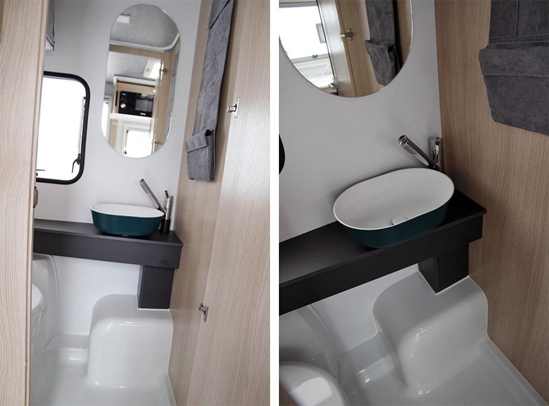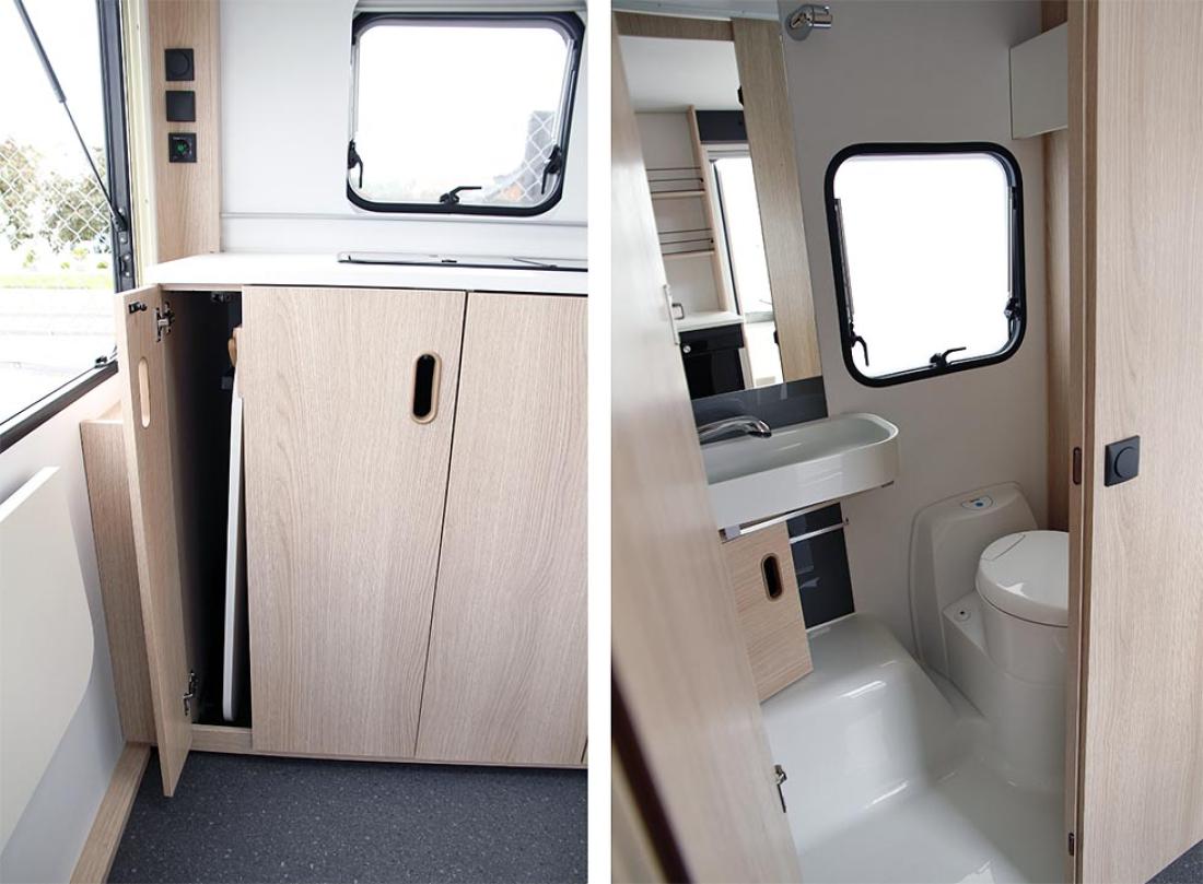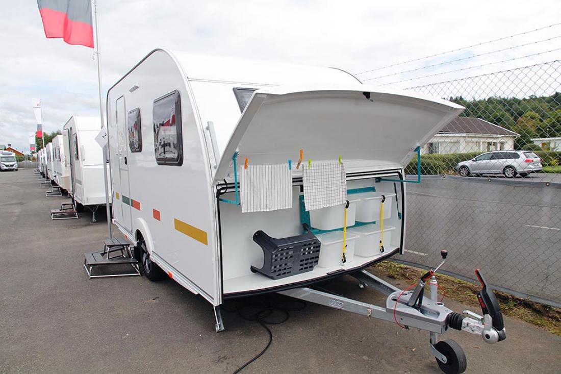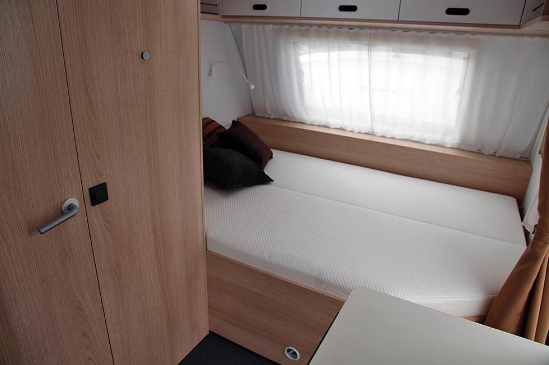 Dette er en modell som har vært på markedet tidligere, men i 2024-utgave er det en helt ny vogn innvendig. Selv om også dette er en kompakt vogn har den en romslig følelse innvendig. I tillegg er det flere praktiske løsninger, som at sofaen kan gjøres om til en 90 cm bred seng. Dermed er det soveplass til tre i kombinasjon med en tverrstilt dobbeltseng. Men det som gjør at denne modellen skiller seg ut er det stooore vinduet som kan åpnes helt opp. Det gjør at skillet mellom naturen der ute, og kjøkkenet og bordplassen inne nærmest blir visket ut. Modellen har både en Truma luftvarmer og en koketopp på gass. Og ikke minst er det meget lyst og trivelig.