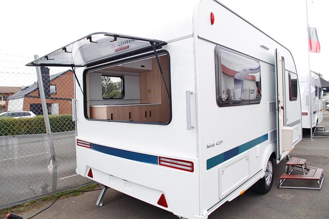 Den slovenske produsenten har virkelig tatt alvorlig på oppgaven om å spare vekt når de utviklet nye Aviva 360 Lite. Resultatet viser kun drøye 700 kg på vekta, likevel byr vogna på soveplass til fire personer. Køyesengen har sin faste plass, i tillegg kan du re opp sittegruppen. Men du kan også enkelt demontere køyene, om du vil ha med et par sykler, for eksempel.