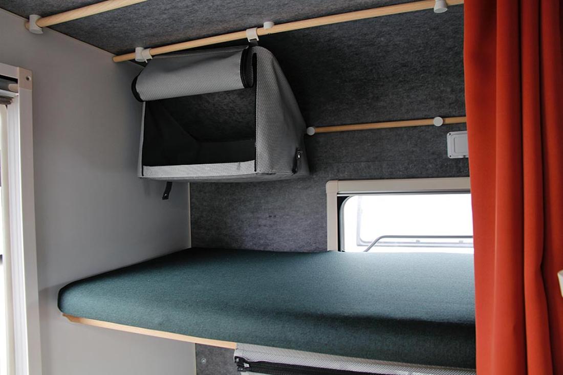 Vogna er annerledes på flere måter, her er for eksempel ingen varmer. Det er heller ikke installert gass i vogna til matlaging. Har du strøm på en campingplass og en induksjonskoketopp, blir det likevel uante muligheter. I det man skulle tro var gasskassen er det i stedet lagringsplass. Opplevelsen av vogna gir en retrofølelse. Og det understrekes ved at det meste av møbler kan tas ut. Dette er camping, i ordets rette forstand!