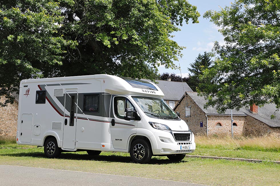 Vi er på den franske landsbygda, og jeg svinger av fra hovedveien og inn på smale sjarmerende småveier hvor jeg stopper med et vertshus i bakgrunnen. Jeg er på testtur med Rapidos 2024-nyhet uten fast seng.