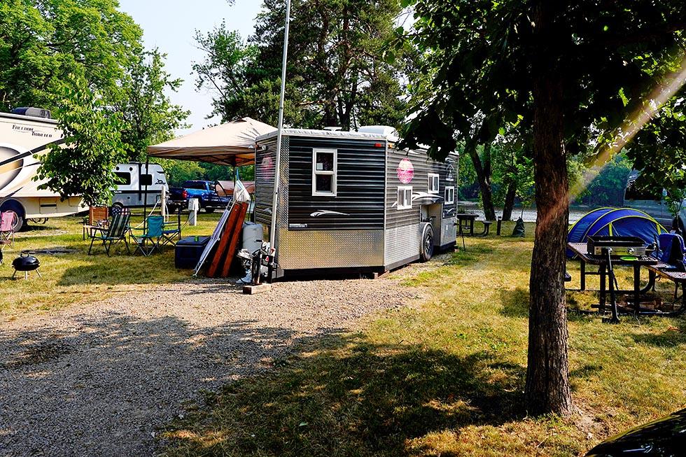 Vi så vognen på en camping i Minnesota, og det er tydelig at den fungerer godt på sommerstid som en tradisjonell vogn også. Du lurer kanskje på hva stanga i front av vogna er? Det er selvsagt en sammenleggbar flaggstang for Stars & Stripes.
