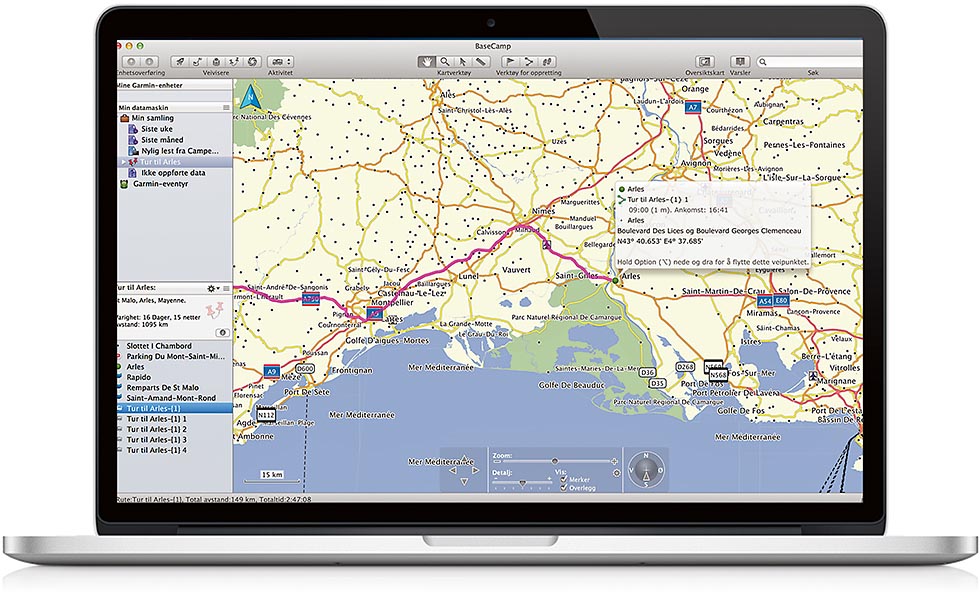 Det er i prinsippet nettopp hva Garmin forteller at deres Basecamp-program for PC og Mac kan gjøre. Du kan sitte i fred og ro ved din egen datamaskin, og legge inn reiseruten på din drømmeferie i detalj.