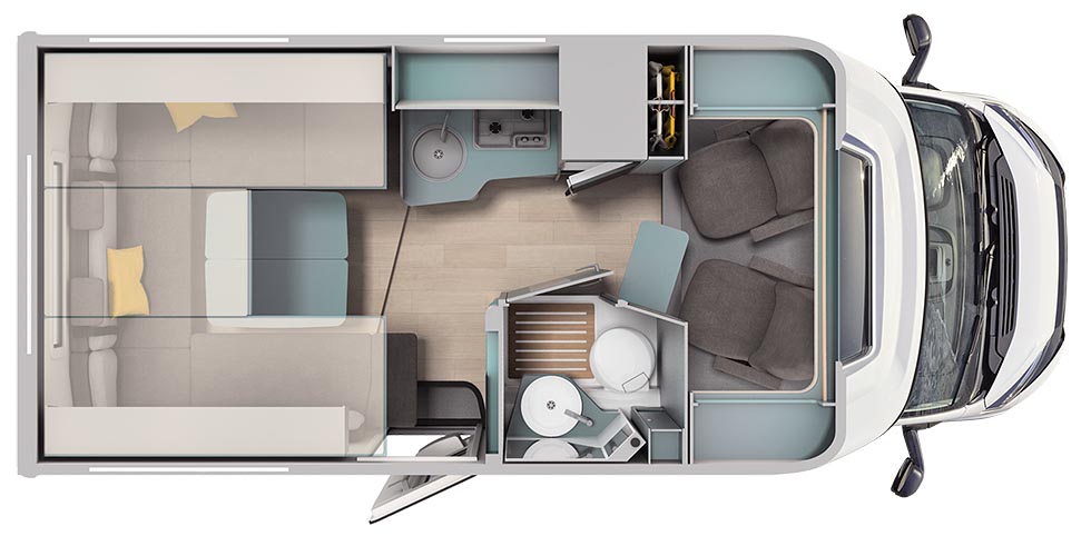 Tradisjonelt bygde kompakte bobiler med sandwich-konstruksjon har ikke fått så mye innovasjon de siste årene. Det har gjerne vært to hovedtyper, enkeltsenger eller tverrstilt seng bakerst. Med seks meter lange Kosmo L 105 skiller Laika seg ut i segmentet.