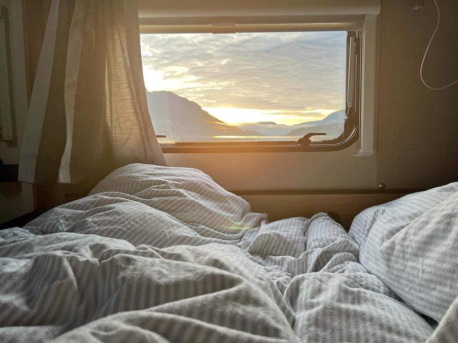 Vi ønsket å gjøre en test av en kompaktvogn hvor man kan stå oppreist. Det matlaging enklere og gir en bedre romfølelse. I tillegg ønsket vi kjøkken med kjøleskap og et varmeapparat. Alt dette byr T@b i minste utgave på. Visste du forresten at T@b også har en 400-modell med bad? At vi måtte droppe bad på testvogna var for oss et greit kompromiss. Fordelen er en meget lett vogn, som er lett å håndtere både manuelt og bak bilen. Kunne vi ønsket oss noe mer? Ja, et dobbelt USB-uttak burde være en selvfølge i 2024. Alt i alt ble vi solid sjarmert av T@b 320, som leverte akkurat som forventet på turen. Som basestasjon på høyfjellet, som skifterom ved badstuen Soria Moria, og selvsagt til kortspilling og trivelige måltider rundt bordet. Men den beste opplevelsen var å åpne vinduet og se solen sakte stige opp over Seljordvannet, mens man nyter en kopp kaffe i sengen.
