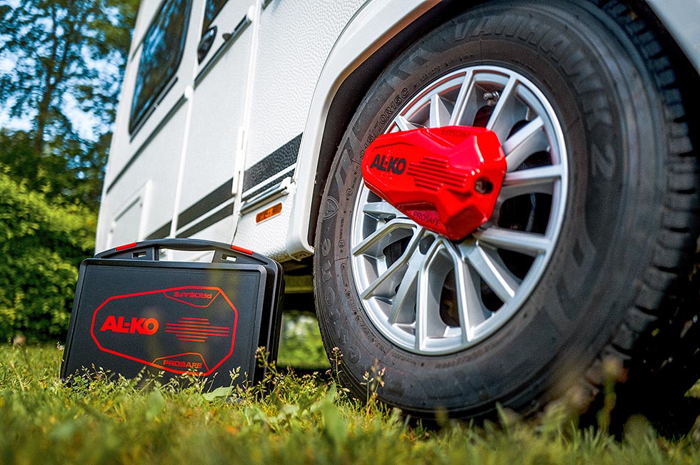 Med PROSAFE hjullås for campingvogner tilbyr selskapet profesjonell tyverisikring. Låsen er designet for et bredt spekter av campingvogner og passer til 13- til 17-tommers hjul med standard stål- eller aluminiumsfelger. En blanding av slitesterke materialer danner en flerlagsstruktur som gjør låsen svært robust.