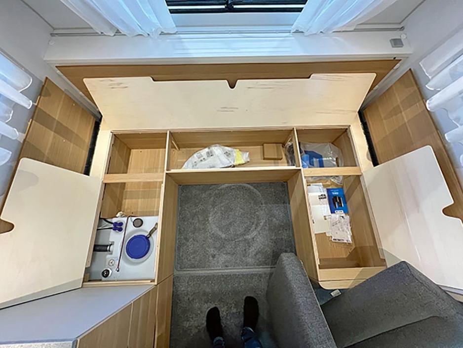 Som det skal være på en vogn med vannbåren varme er det luftespalter langs veggene. Det gjelder også ved overskapene og sengene. Adria har god kjennskap til vannbåren varme, og hva som skal til for å få en vellykket installasjon. Det innebærer i tillegg til luftingen bak møblene også dobbelt gulv under sengene. Det sikrer god ventilasjon også her, selv når du har fylt opp med alt du vil ha med på tur.