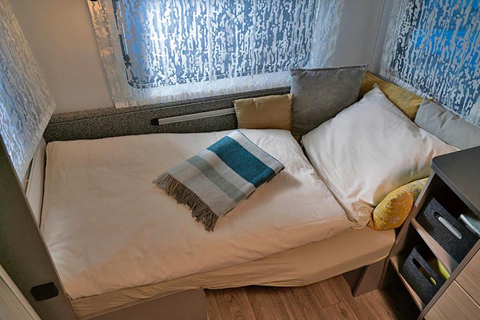 Sandwichkonstruksjonen har glatte plater som sørger for høy stabilitet i denne lette campingvognen. Takket være god isolasjon kan reisende nyte et behagelig inneklima. Din Fritid har ikke sett nyheten selv. Vogna hadde verdenspremiere hos utvalgte forhandlere på det tyske hjemmemarkedet i mars.