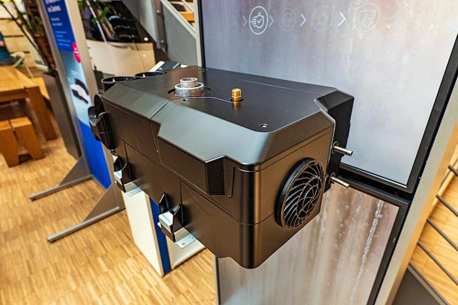 I 2015 tok Alexander Wottrich, barnebarnet til Trumas grunnlegger, over selskapet. Jeg sitter i salen og ser hvordan han på pressekonferansen ikke klarer å skjule hvor stolt han er over nettopp varmeveksleren. Designet gjør det mulig å integrere el-patronene. Det går vannkanaler gjennom den, og brennerhuset er også plassert her.