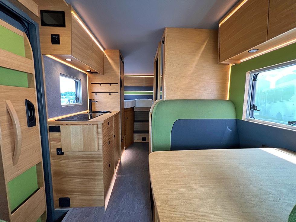 Testbilen har en Truma Saphir Comfort SC, som er en stillegående, helelektrisk varmepumpe som går på strømnettet og både kan varme og kjøle kjøretøyet. På kjøkkenet finner du en elektrisk induksjonskoketopp.