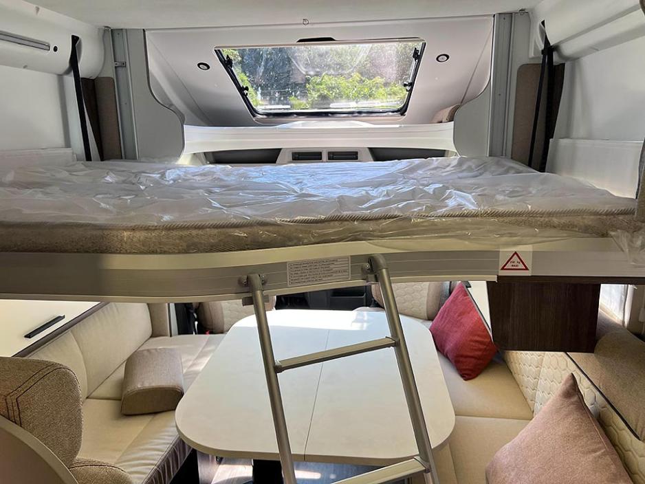 Benimar Tessoro 425 er en halvintegrert bobil på Ford-chassis som byr på hele seks sitteplasser. Og minst like mange soveplasser. Men i Norge vil modellen ikke bli godkjent for flere enn fem.