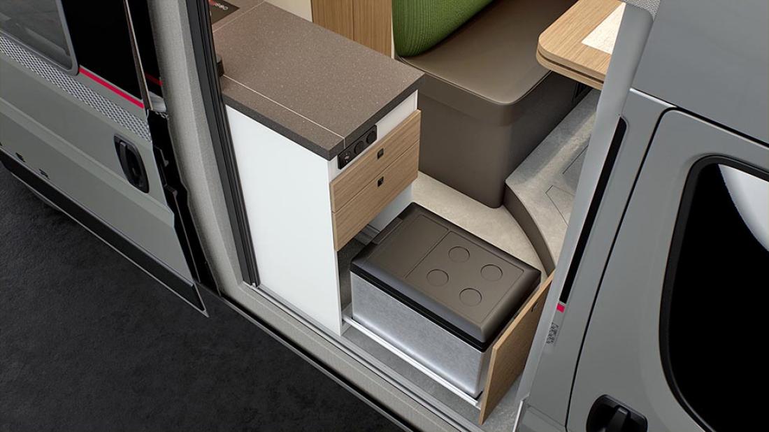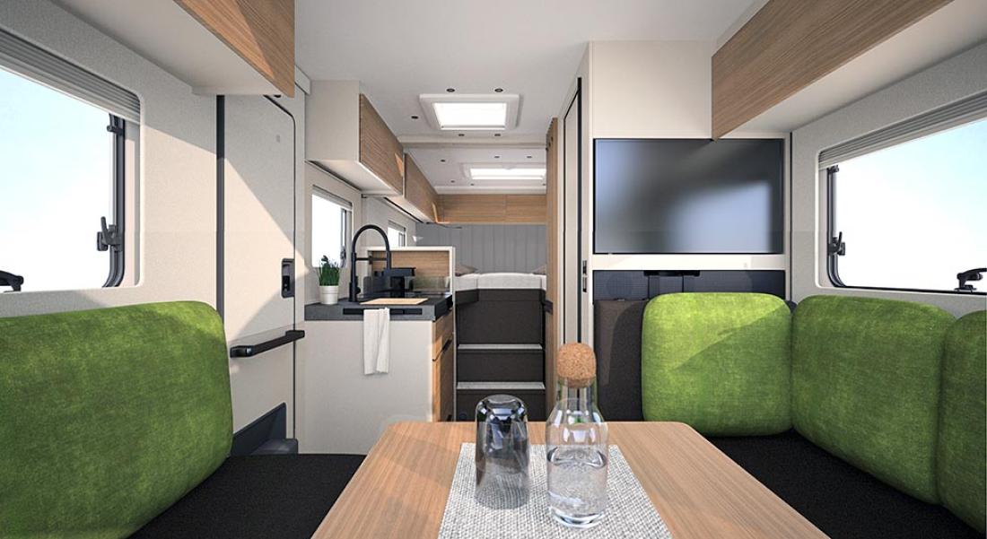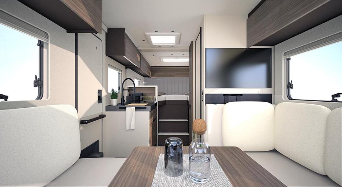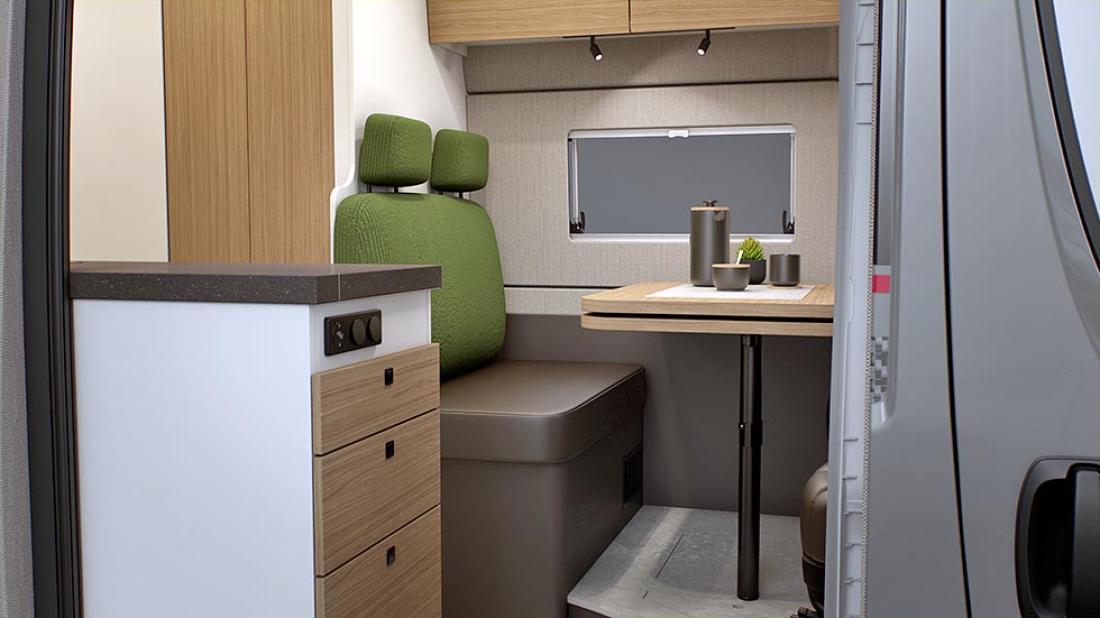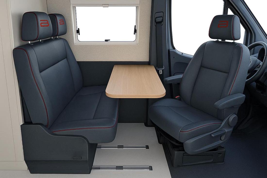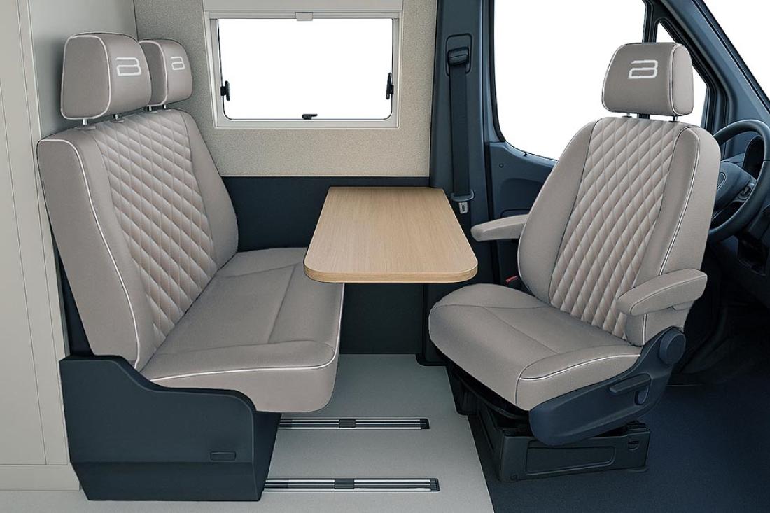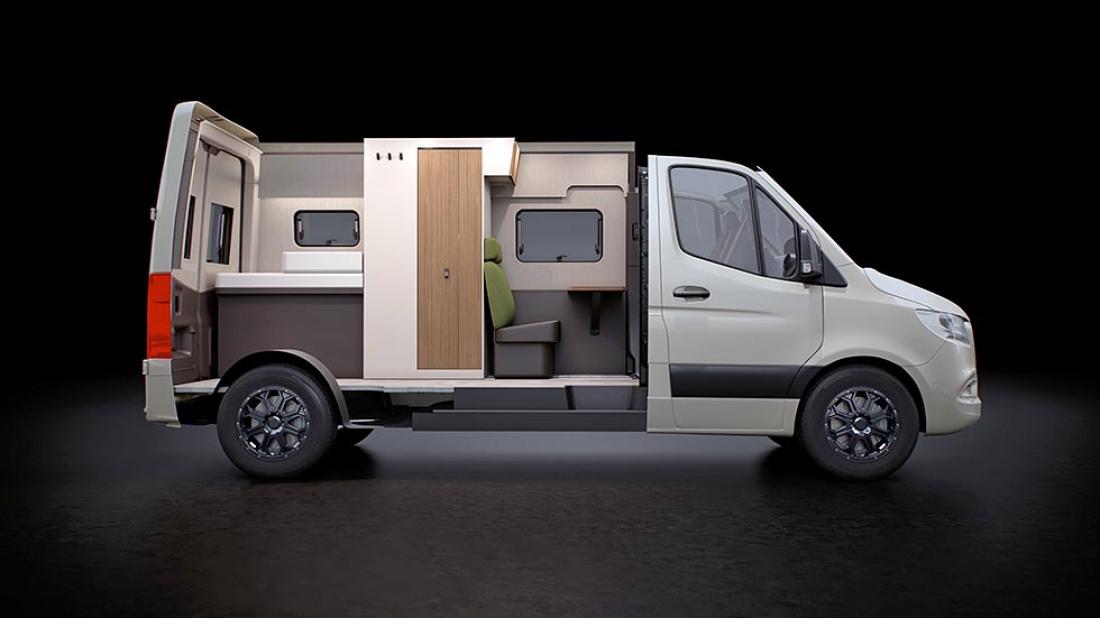 Er også en bybobil, men basert på Mercedes Sprinter. Den seks meter lange modellen har langsgående enkeltsenger. Det er mulig takket være en ny og patentert løsning: et skyvbart baderom. På dagtid har man en firepersoners sittegruppe fra førersetet og langt inn i venstre seng. På natten skyves sittebenk og bord sammen, og en ekstra del legges ned på sengen. Dette er nettopp den typen unike løsninger Brandl ønsker. Fire dekoralternativer for dører og luker, samt et bredt utvalg farger og tekstiler gir nesten 100 kombinasjonsmuligheter. Prisene vil bli markedets gunstigste, og modellen kan leveres med bakhjulsdrift eller firehjulsdrift.