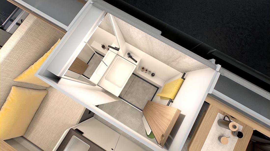 Retter seg mot det lojale segmentet av halvintegrerte bobileiere, og tilbyr maksimal fleksibilitet. Patentert 90-graders roterbar sofa, et uttrekkbart sidebord mellom kjøkken og soverom, stor 143-liters kompressorkjøleskuff, og kjøkkenløsning med to uttrekkbare seksjoner. Et senkesengalternativ forsvinner nesten usynlig opp i taket. Filtoverflater og det samme dekor- og tekstilutvalget som i Habiton gir stor individuell frihet, selv om planløsningen kun tilbys med enkeltsenger eller frittstående dobbeltseng.
