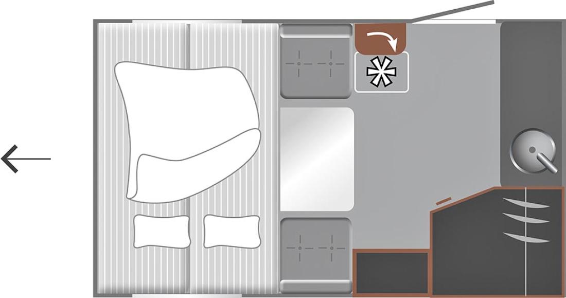 To av de tre planløsningene er for par (350 D og 400 C) og den siste modellen (470 K) rommer en familie på opptil fire personer. Den minste modellen i serien, e:dero 350 D, har en tillatt totalvekt på under 750 kg, noe som appellerer til unge campere ettersom den kan trekkes uten tilhengerlappen. I tillegg vil en elbil sette pris på en så lett og liten følgesvenn. Det betyr mer frihet og færre begrensninger på reisen.