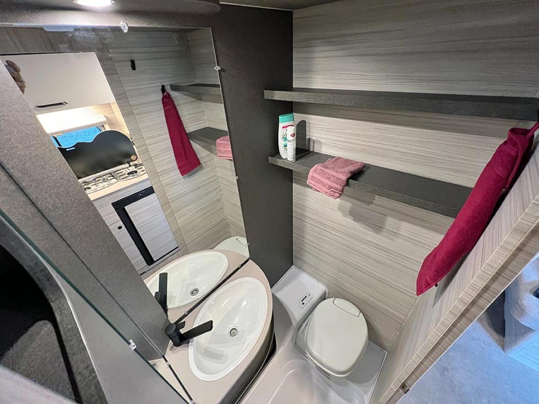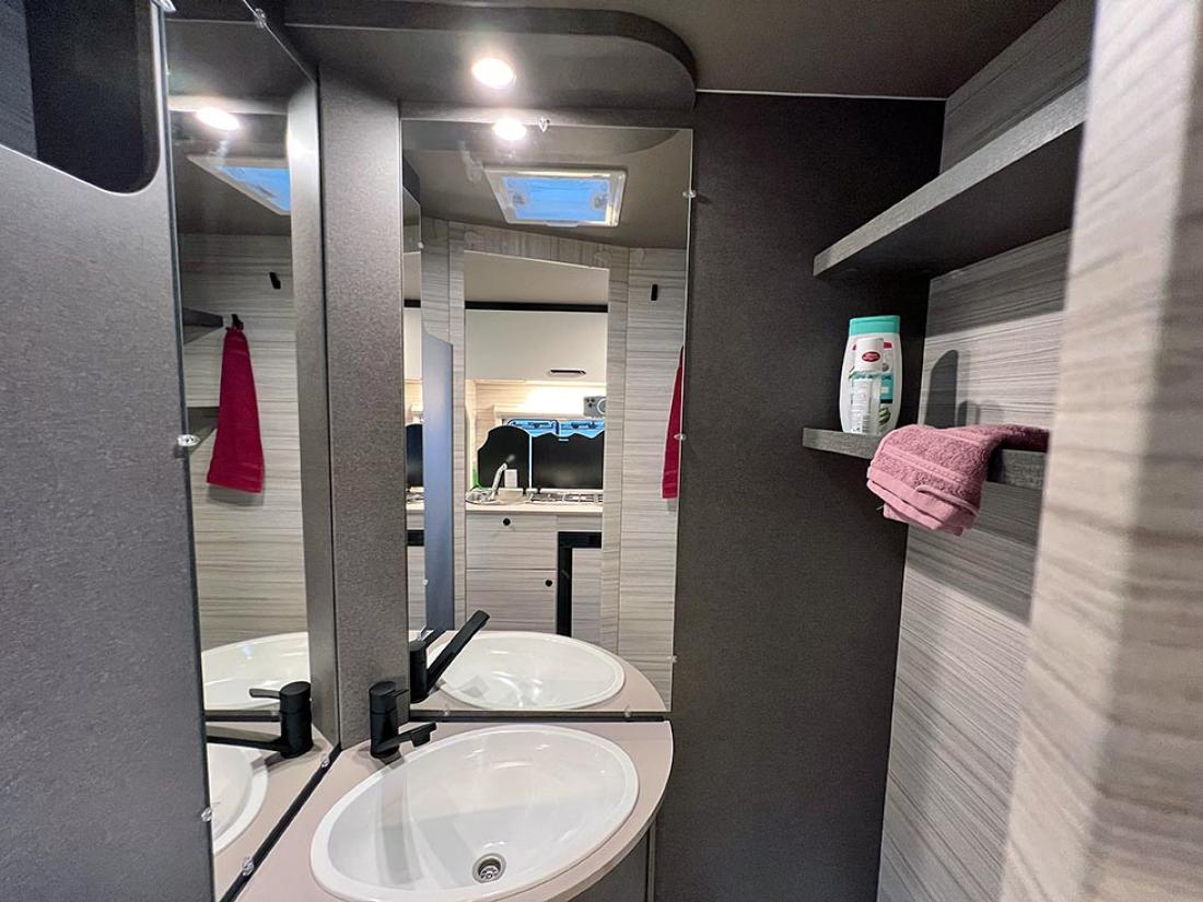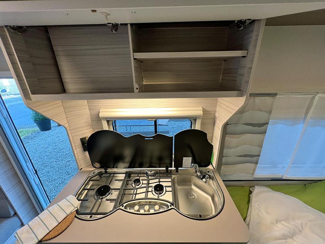 Innvendig skiller Active-modellene seg også visuelt fra de vanlige C’joy- og C’go-modellene. I C’joy Active satser Dethleffs på lyst tredekor i møblene. Mens C’go Active har hvite dører og overskapluker kombinert med ensfarget lys korpus. I tillegg gir svarte vannkraner, dørhåndtak og skapgrep en tydelig kontrast.