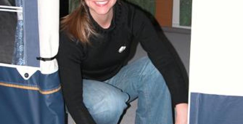 En ny Polar 590 med vaskerom i full bredde med dusjkabinett og mange tredetaljer som gir et varmt inntrykk. Her finnes romslige baderomsskap, et på hver side av speilet, og dessuten et hyllesystem med plass til håndklær, toalettartikler og andre småting. Helfigurspeil og 230 V uttak for hårtørker/barbermaskin.